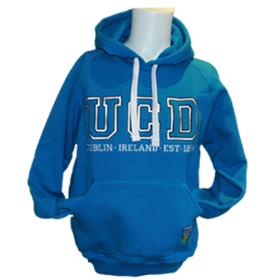 UCD Sapphire Blue Hoody unisex with (DUBLIN.IRELAND.est1854) embroidered on the front. full colour UCD crest embroidered on kangaroo pouch (left hand corner). 100% cotton machine wash 40 degrees. tumble dry not recommended. (size XXSmall = ladies size 6-8 European Size)